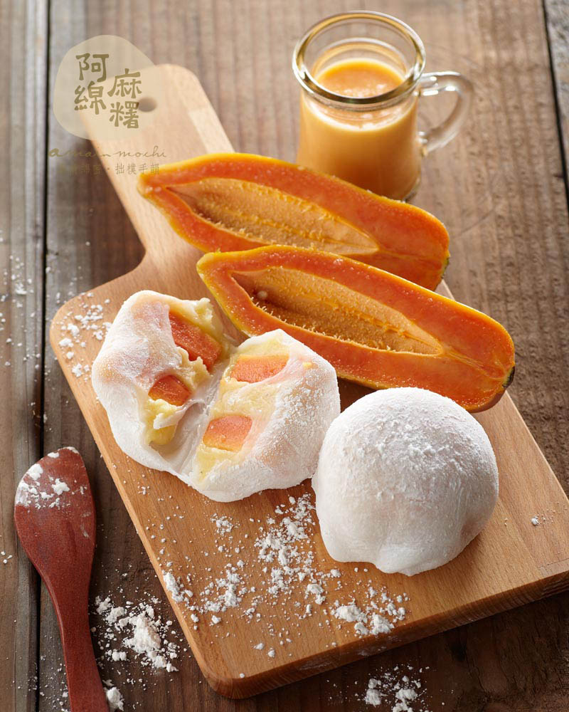 成 份:木瓜、手作牛奶餡(牛奶、蛋、發酵奶油、砂糖)、雪莓娘皮(樹薯澱粉、脂肪酸蔗糖酯、糯米粉、沙拉油、砂糖)