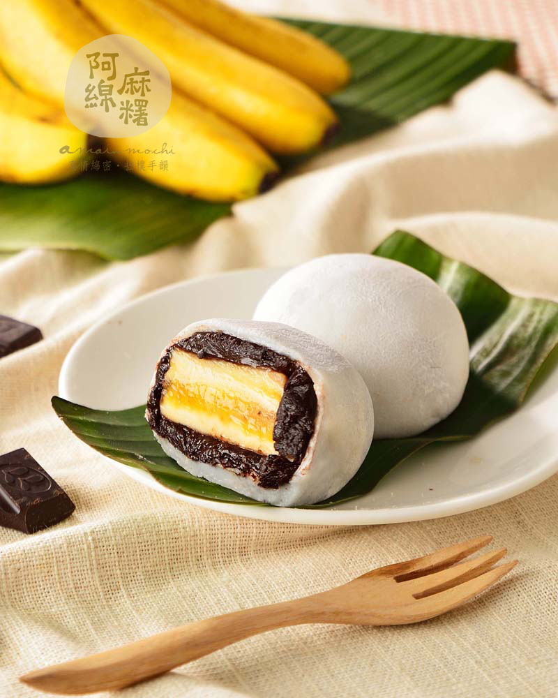 成份:南投山蕉、米歇爾巧克力餡(米歇爾巧克力粉、牛奶、蛋、發酵奶油、砂糖)、雪莓娘皮(樹薯澱粉、脂肪酸蔗糖酯、糯米粉、沙拉油、砂糖)