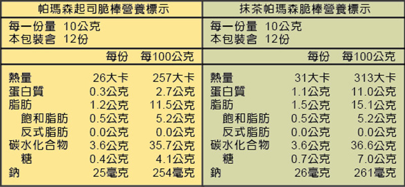 成份:麵粉、樹薯粉,無鹽奶油、帕瑪森起司粉、蛋、植物油、糖、海鹽